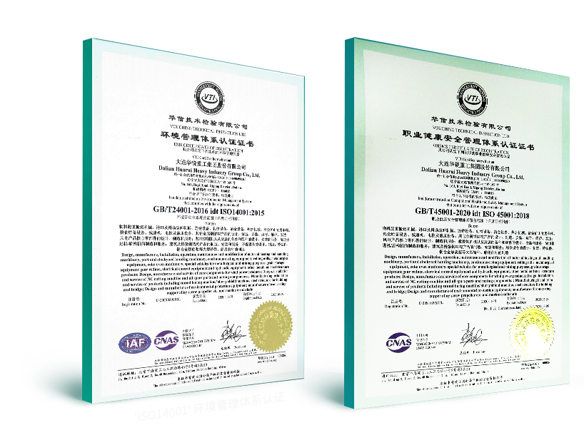 大連重工在確保公司產(chǎn)品、活動和服務符合國際職業(yè)健康安全和環(huán)境的政策、法律、法規(guī)及其他的要求,公司順利通過了'ISO45001職業(yè)健康安全管理體系認證和 'ISO14001' 環(huán)境管理體系認證,持續(xù)保持并改進。